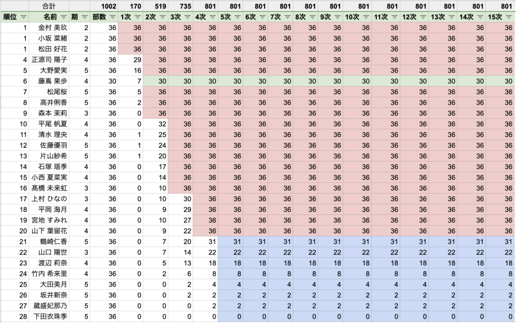 どのようにするのが最も公平かと考え、あの坂では以下のように人気度を算出することとしました。(基本的に乃木坂と同じ方式です)